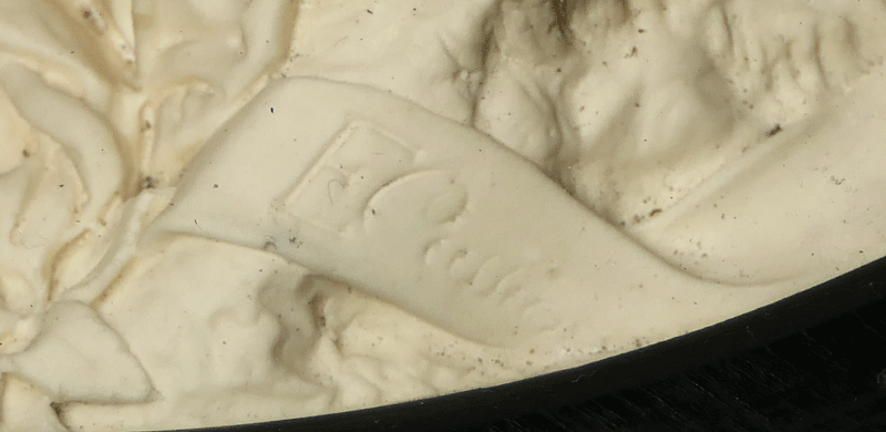 アダムの骨の左側に、本品を制作した彫刻家 E. カシエのサイン (E. Cassier) が刻まれています。