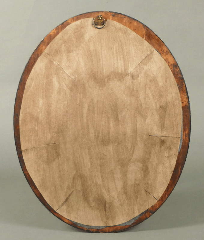 長い時を経た古物ならではの風合いの良い楕円木製額が、この作品をより一層引き立てています。