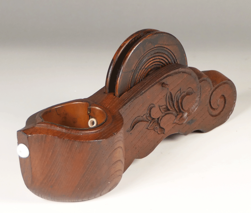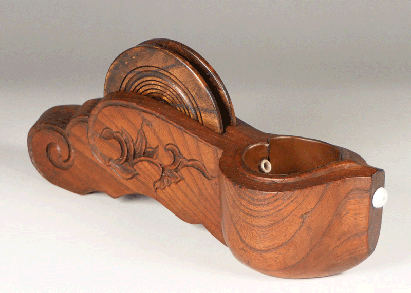 墨壺自体は大工が部材に直線を引くときに使った道具ですが、機能美と装飾が微妙に調和して、ひとつの民藝の美を生み出しているのではないでしょうか。