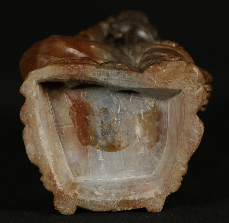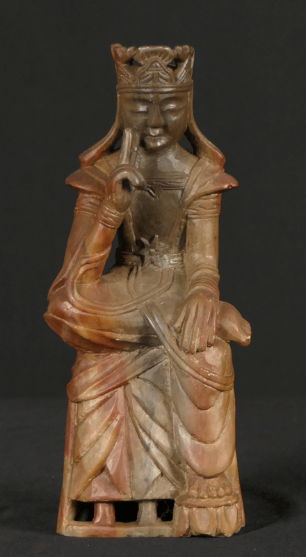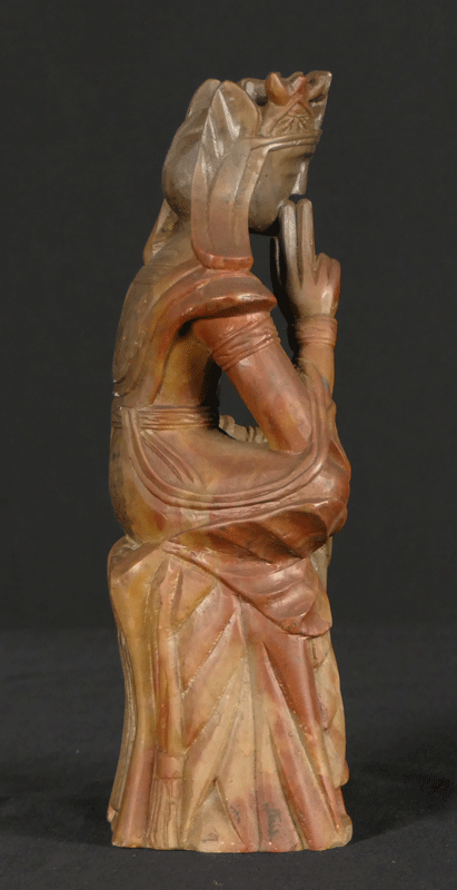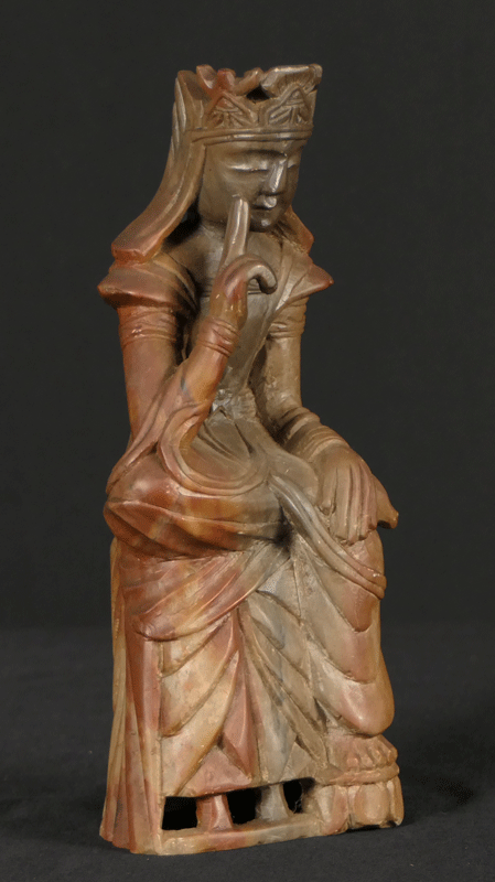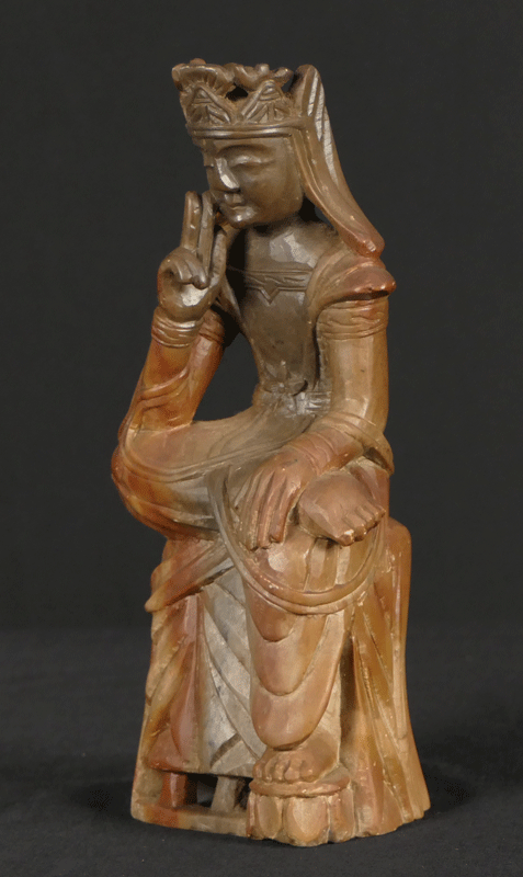 石造の弥勒菩薩半跏思惟像の逸品です。 五十六億七千万年後にこの世に顕現して、衆生を如何に救済するかを思案されているお姿です。 石造の弥勒菩薩半跏思惟像はひじょうに珍しく希少です。 状態は良好です。 この機会をお見逃しなく。 作品サイズ・高さ20.4㎝ 幅8.5㎝ 奥行6.4㎝ 重量1.1kg