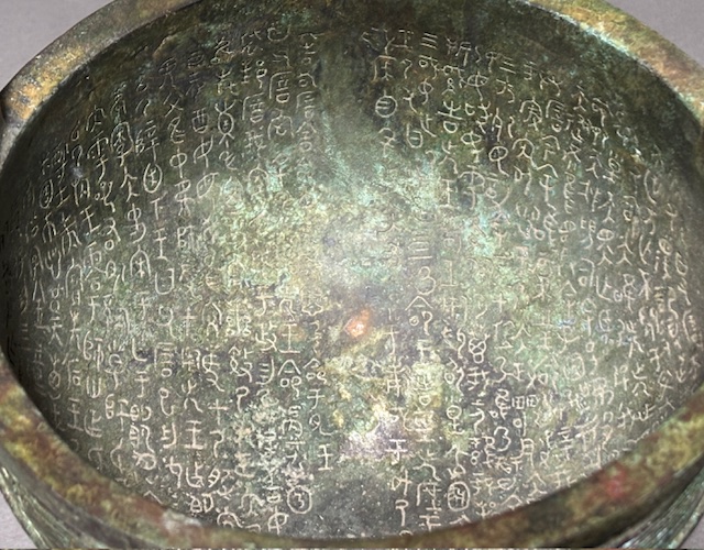 胴部の内側は、曲面にもかかわらず整然と銘文(金文)が彫られています。