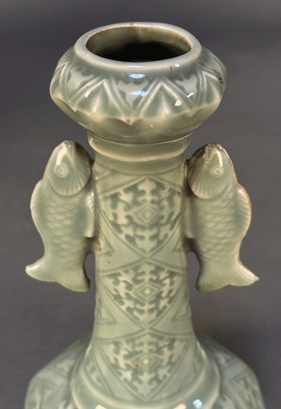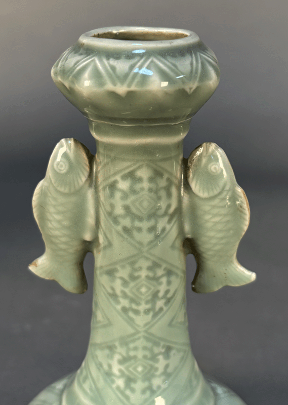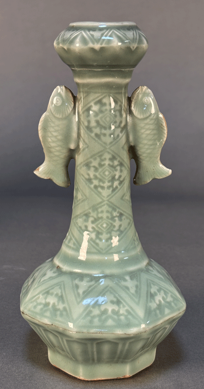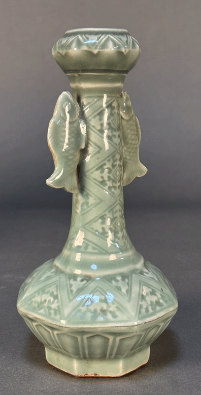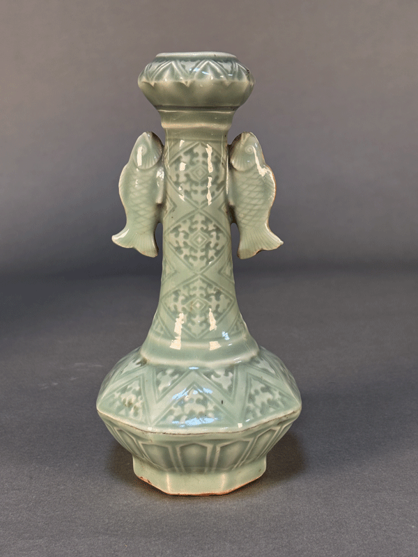 明代青磁双魚耳八角玉壺春瓶の逸品です。