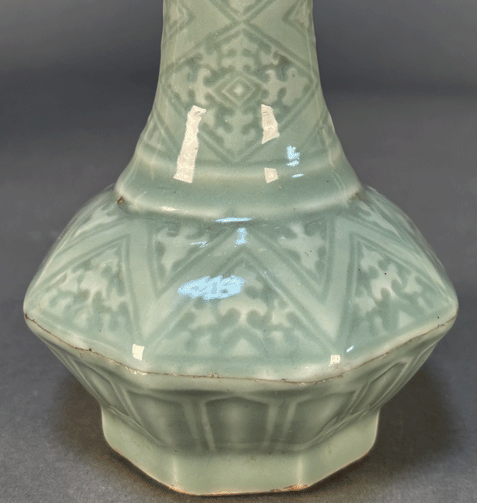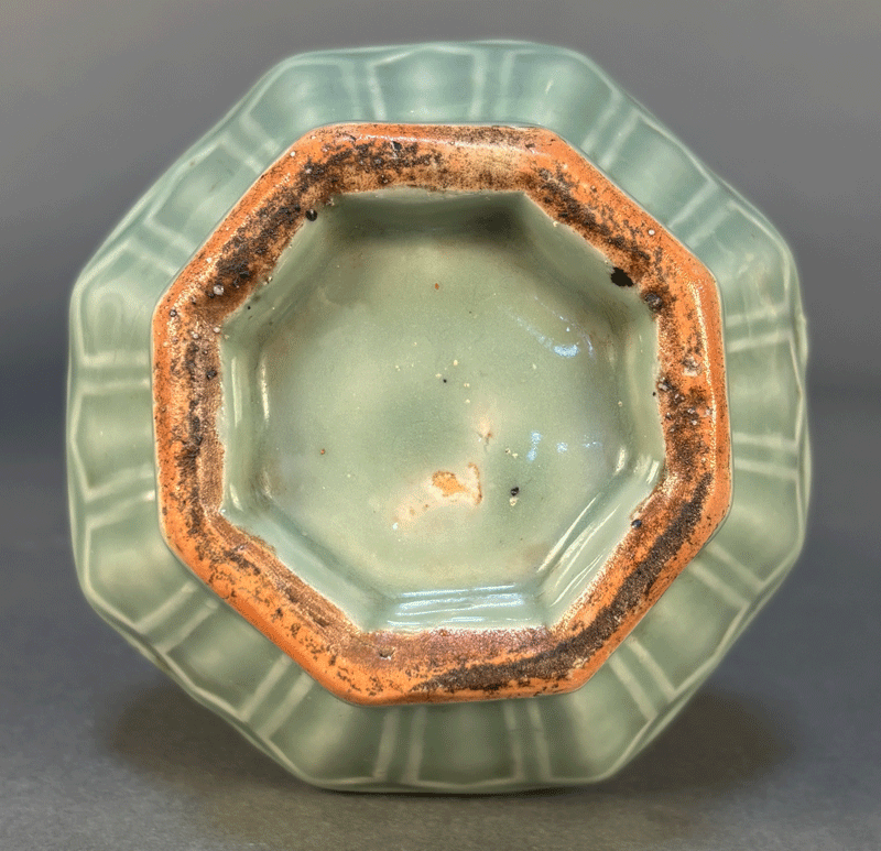 今回のお品が特異なのは、口部分と下膨れの腹部分が八角形になっていることです。