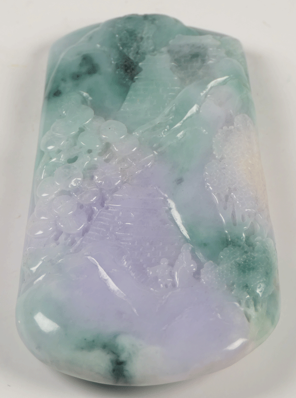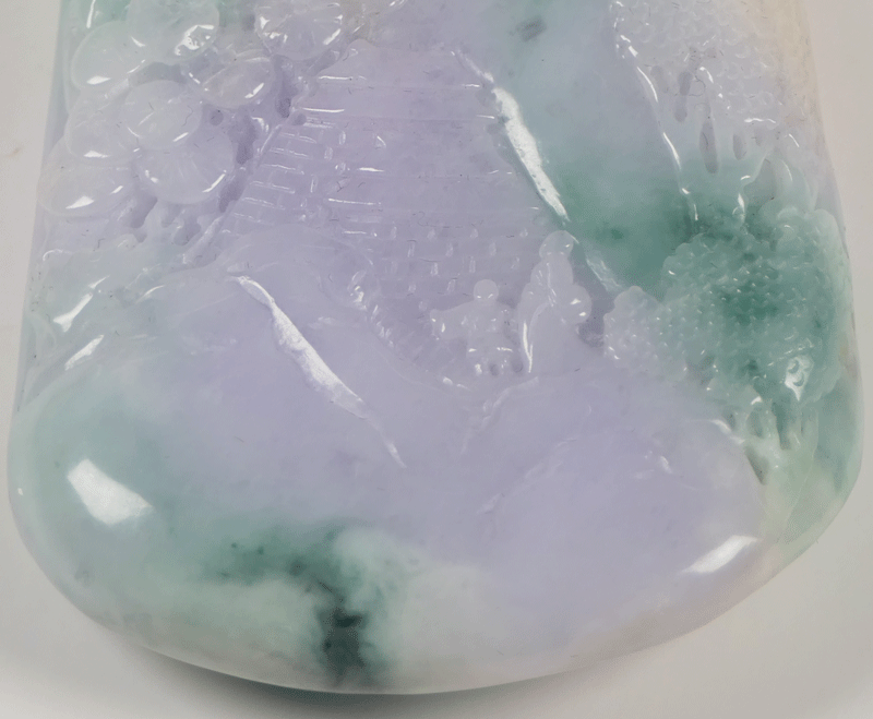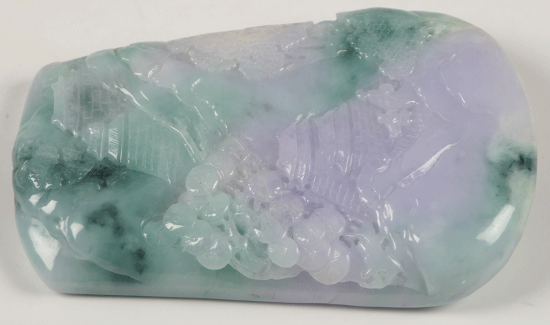 翡翠 楼閣山水文握り石 翡翠把玩件 翡翠手把件 古美術 波兎 骨董 ラベンダー翡翠