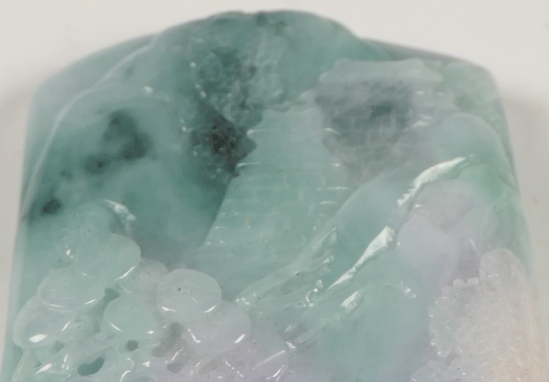 翡翠 楼閣山水文握り石