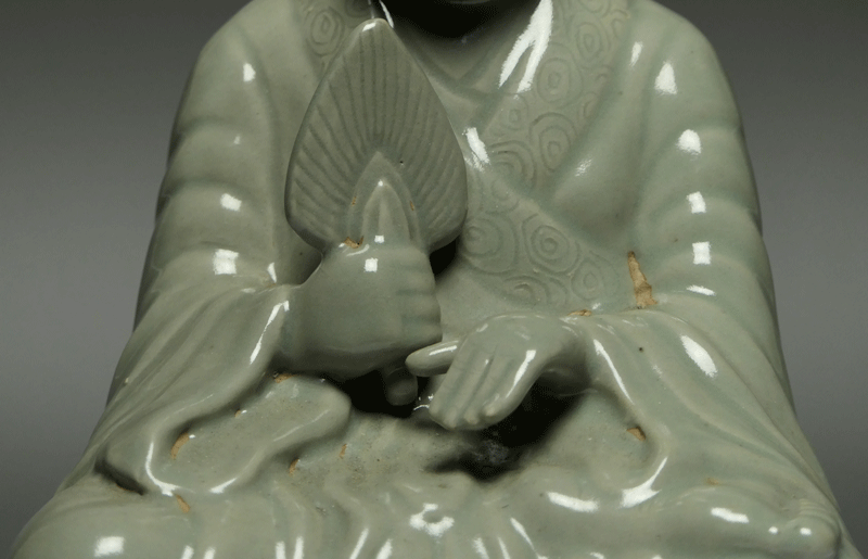 頭に儒冠を被り、儒服を着て右手には芭蕉扇を持っています。 威厳を感じさせるとても良いお顔をされています。 状態は良いほうだと思います。 このお品は、30年前に65歳で故人となられた某芸術大学の教授の収集品でありましたが、ご親族のご依頼により、出品させて頂いております。 高さ26㎝ 幅16.8㎝ 奥行14.7㎝ 箱