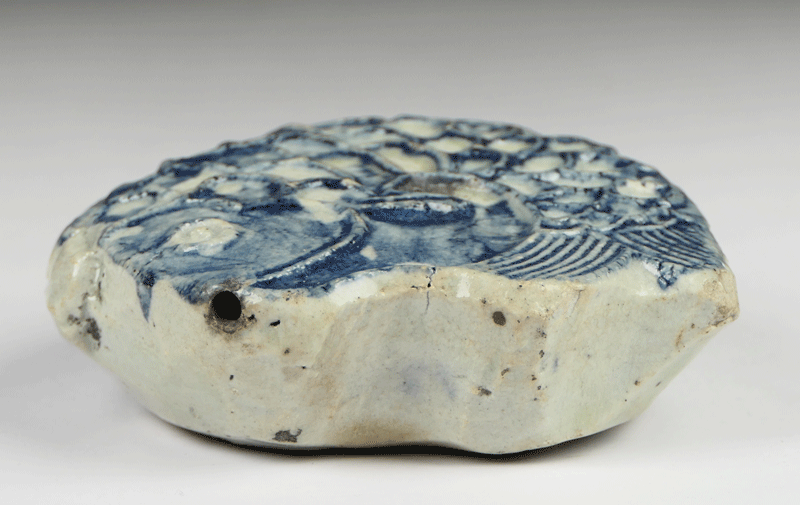 存在感のある少し大振りの水滴です。 呉須の色合いに風趣を感じます。 サイズ・最大幅9㎝ 厚み3.2㎝ 箱あり
