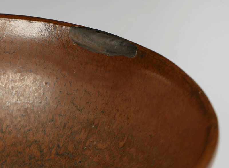広口の天目茶碗の逸品です。 暖かみのある釉調とまろやかな器形が上品です。 口縁に銀直しがございます。 名品の香りが致します。 サイズ・ 高さ6.4㎝ 口径14㎝ 高台径4.6㎝ 箱付