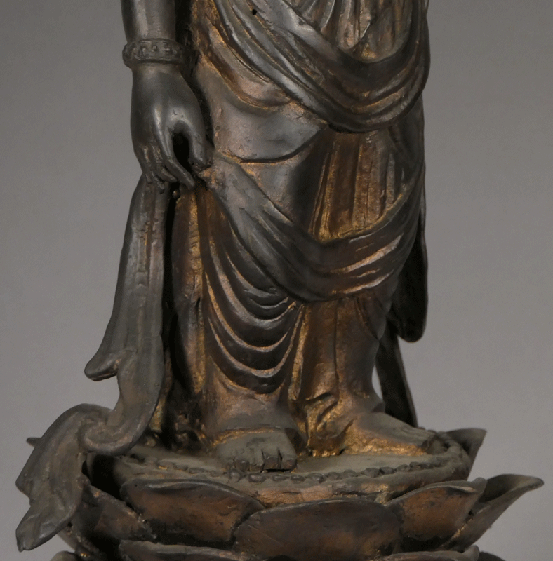 この観音さまはやわらかな衣を身にまとい、手足が伸びやかに配されます。