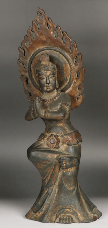 日本では、勢至菩薩が独尊となることはきわめてまれで、多くは阿弥陀三尊の脇侍とし