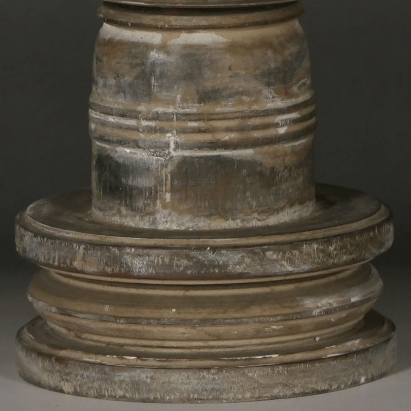 基壇部と塔身部、相輪部に分かれ、それぞれ一木を用いて轆轤で削り出しています。