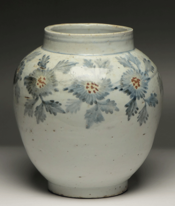 李朝青花辰砂菊文壷 朝鮮陶磁 陶瓷 染付 民芸 民藝 柳宗悦 古美術 波兎 骨董