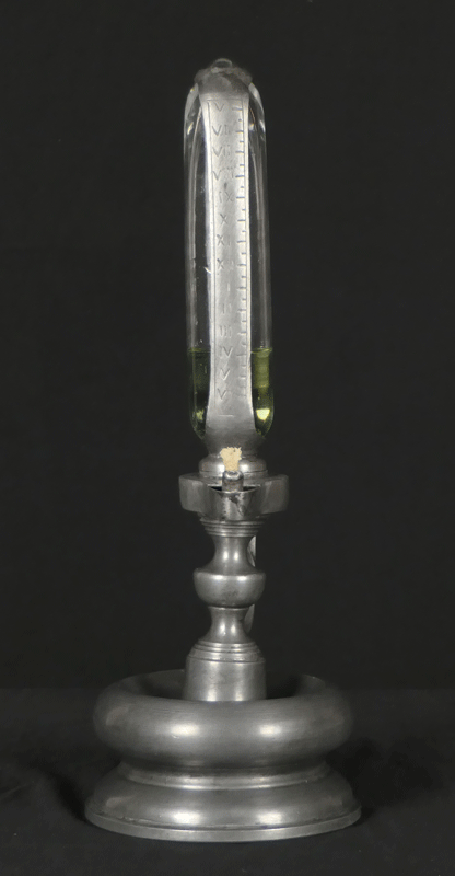 ガラス製の油入れに目盛りをきざみ、時間を計る仕掛けで、近世までドイツ、オランダで使用されました。