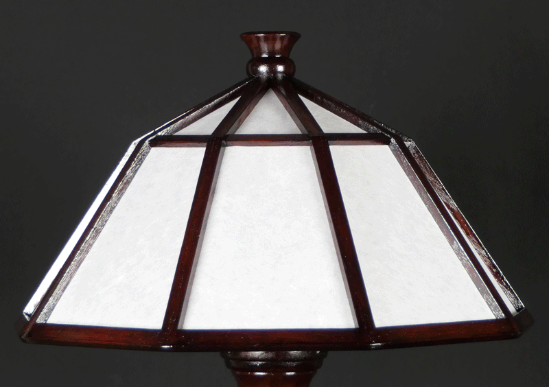 和紙貼りの笠の形は複雑で、中折れの九角形をしています。