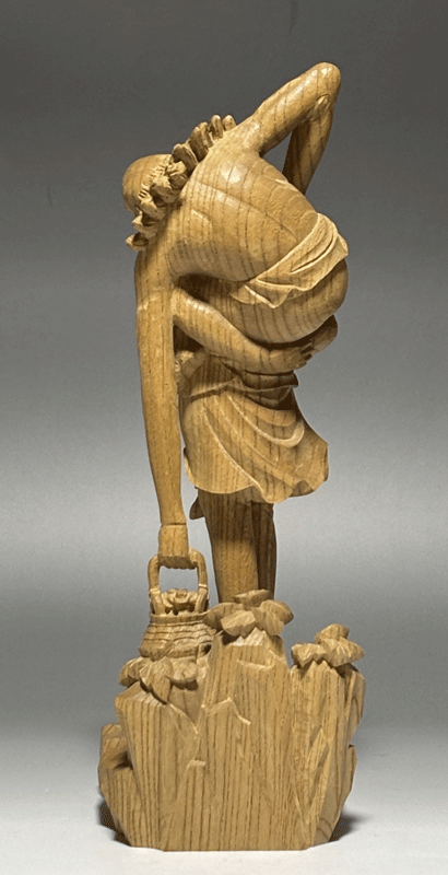 作品サイズ・高さ32㎝ 幅10㎝ 奥行11.5㎝ 重量0.6kg 木製(けやき) 箱あり